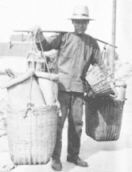 Dad Carter always said he didn’t have a lazy kid on the place, and I think he was kind of proud of the fact. He arose long before daylight in the morning and expected everyone of the family to be up, washed and dressed and ready for breakfast. When every one was seated at the table “which was always set for ten or twelve”, we then bowed our heads while he asked the blessing. After the meal was over, he would then tell Elmer and the hired man what work he wanted done for the day. There was very little machinery which consisted of a walking plow to turn the sod, and an A shaped harrow, a cultivator or a double shovel one horse plow. So everything was mostly done by hand. I remember in the spring how we had to rake the leaves away from the rail fences then some night when the wind was very calm we would all go out and burn the leaves. We raised lots of vegetables to dry for winter, for at that time there was very little canning done. We dried corn, and various kinds of beans, apples and peaches. We canned wild gooseberries and blackberries which were very plentiful. I well remember one time Ruth, Lena and Bertha hitched up a team of broncos to the old spring wagon and drove two or three miles to pick blackberries. They had got a good picking of 10 or 12 gallon and were on their way home. There was a We ran to the house as fast as we could and told Mother, she grabbed some water and a towel and started for the scene, telling us to ring the old dinner bell long and hard, then to open the gate for Dad and Elmer when they came. We did just that, and had hardly gotten the gate open till we heard the horses hoofs and the harness rattling. Then Elmer came dashing around the corner on one of the work horses and Dad not far behind. They paused just long enough to find out what the trouble was. When they got there, Ruth had fainted and Mother was trying to bring her to with the water she had carried with her. The men went back to the barn and hitched up a team to a wagon, got some bedding from the house and proceeded to haul her on home. We had just gotten our first telephone shortly before this happened so were able to get a doctor there in a couple of hours. Old Mother Nature provided us with many things to keep us in good health. In the spring we went to the bluffs nearby to gather wild greens which we cooked with a piece of pork. It made a very tasty dish and we all liked it very much. Then we got the sassafras bark and made a tea. It had a wonderful aroma and the color was a bright red. And best of all it tasted as good as it smelled. It was supposed to be good for your blood. Then there was the slippery elm bark. One took off the outer bark and stripped out the inside part. It was cut into strips and stood in a glass of water. This was good for chills. When one is sick enough you can take it. Just put a strip in your mouth and chew it. It tastes like the raw white of an egg. Dad always butchered two or three fat hogs at a time. After the meat had taken salt, it was hung up in the smoke house and a fire was kept under it with One day we saw the funniest looking thing coming up the road. At first we couldn't quite make out what it might be but as it came nearer we saw a man leading a burro, or donkey as they are sometimes called, with baskets tied on all over him. Then coming along behind was a woman riding an old flea-bitten dun-colored pony with a side saddle. They were peddling baskets which they had made of hickory bark. They lived in a cabin over across the bluffs from us. These baskets were all sizes from a real tiny one to a bushel size. They also made chairs with woven seats and shingles for roofs. They were all well-made and the folks bought all they had need of and they lasted for many years.