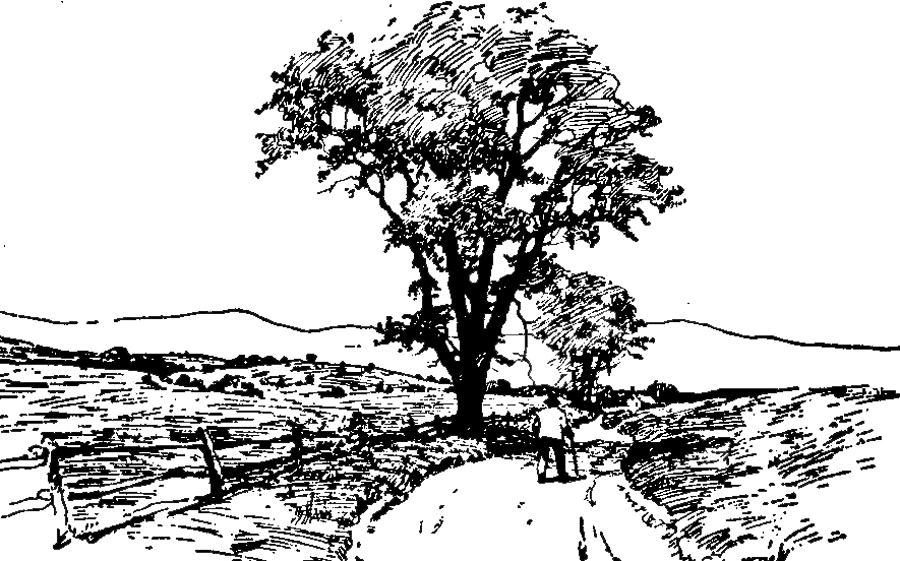 A mile west of our house there was a big bluff. We farmed the land to the bluff. There was timber on this bluff and in the winter the wild turkeys would come down in the field to get corn out of the shocks. Dad and Elmer, our oldest brother, always tried to slip around and shoot them but they were too sly.